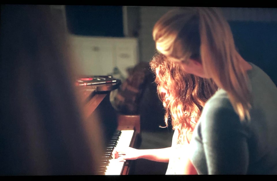 As the scene unfolds, Madeline’s usually-defiant teenage daughter, Abigail, slips into the room and unexpectedly joins her mother beside the piano, even begins to chat with her, ask questions, show concern. Hours after an unsettled dinnertime argument, the two now share moments of approach and flickers of tentative reconnection. Madeline tearfully and wryly acknowledges how sad she feels as she navigates these necessary changes in the lives of her family, and her daughter listens. Within the shadowy quiet, there’s a sense of relief and possibility.