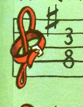 The treble clefs are also customized to suit each song’s story. See if you can figure out which illustration goes with which rhyme. There are ten songs in all, including “Sing a Song of Sixpence,” “Little Miss Muffet,” “Humpty Dumpty,” and “Hey, Diddle, Diddle.”