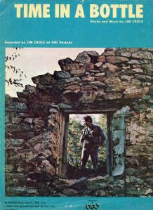 This vintage sheet music for Jim Croce’s wistful love song, “Time in a Bottle,” reminds me of an old TV commercial for “The Very Best of Jim Croce” that used to run late at night in the early 1980s.